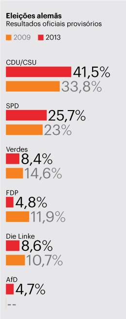 Outro dado relevante das eleições de domingo foi a não entrada do partido antieuro AfD no Bundestag. O partido obteve 4,7%, perto do que seria necessário mas não suficiente para eleger deputados. No entanto, não é claro o que farão agora os seus líderes - os analistas dizem que poderão ainda ser uma voz no debate da crise do euro. Este tem estado em suspenso durante a campanha alemã, e deverá esperar ainda por um novo Governo no país, mas a probabilidade de um novo resgate à Grécia e discussões sobre a união bancária estão à porta.
