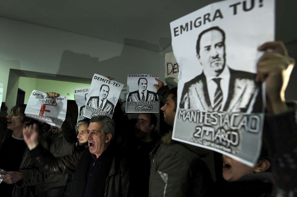 O governante não parou perante os manifestantes, mas já dentro da sala, onde os protestantes foram impedidos de entrar, admitiu que é “natural que exista descontentamento”, numa altura em que “estamos a viver os tempos mais difíceis de que há memória”, com uma taxa de desemprego histórica e com cada vez mais gente a emigrar.